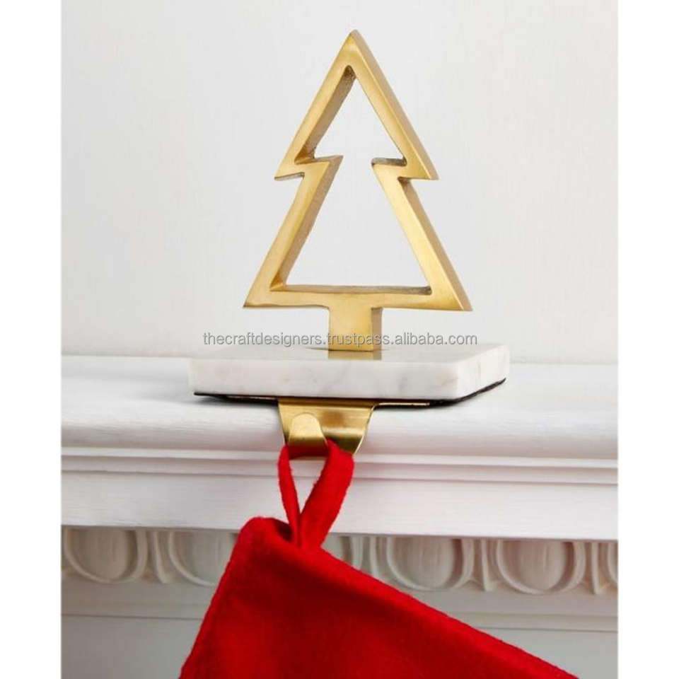 Brass Antique Santa Sleigh Stocking Holder Luxurious Home Decoration Christmas Supplies Stocking Hanger Hook Customize Designs