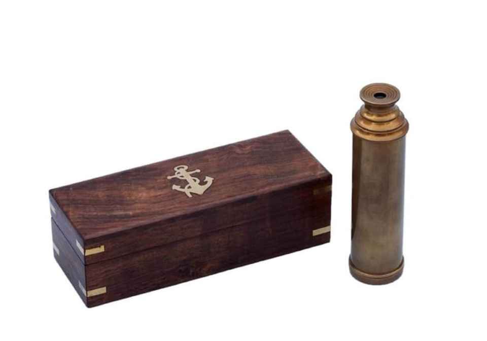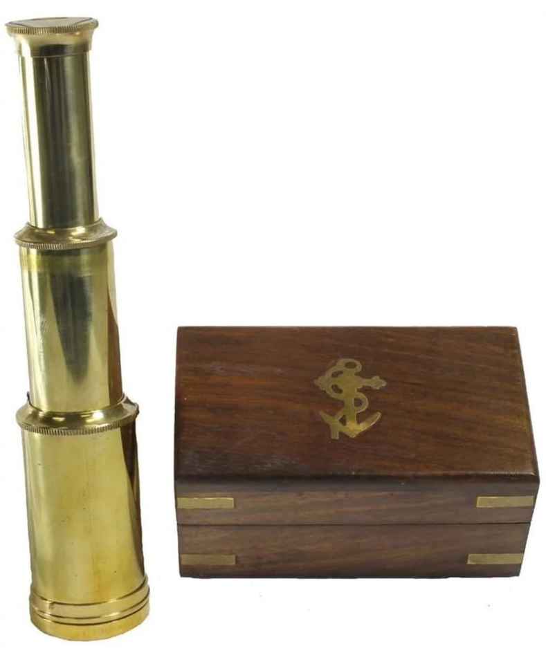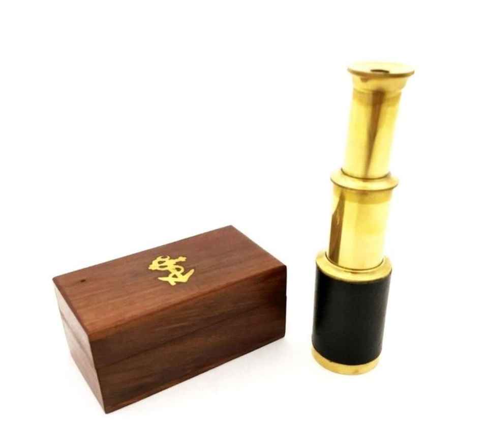Brass Antique Telescope Pullout with Wooden Box/Brass 3 Fold Telescope With Lens Lid Collectible Marine Gift/business Promotion