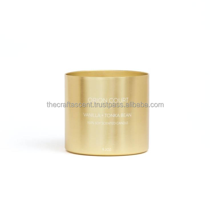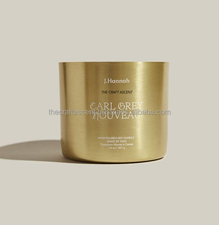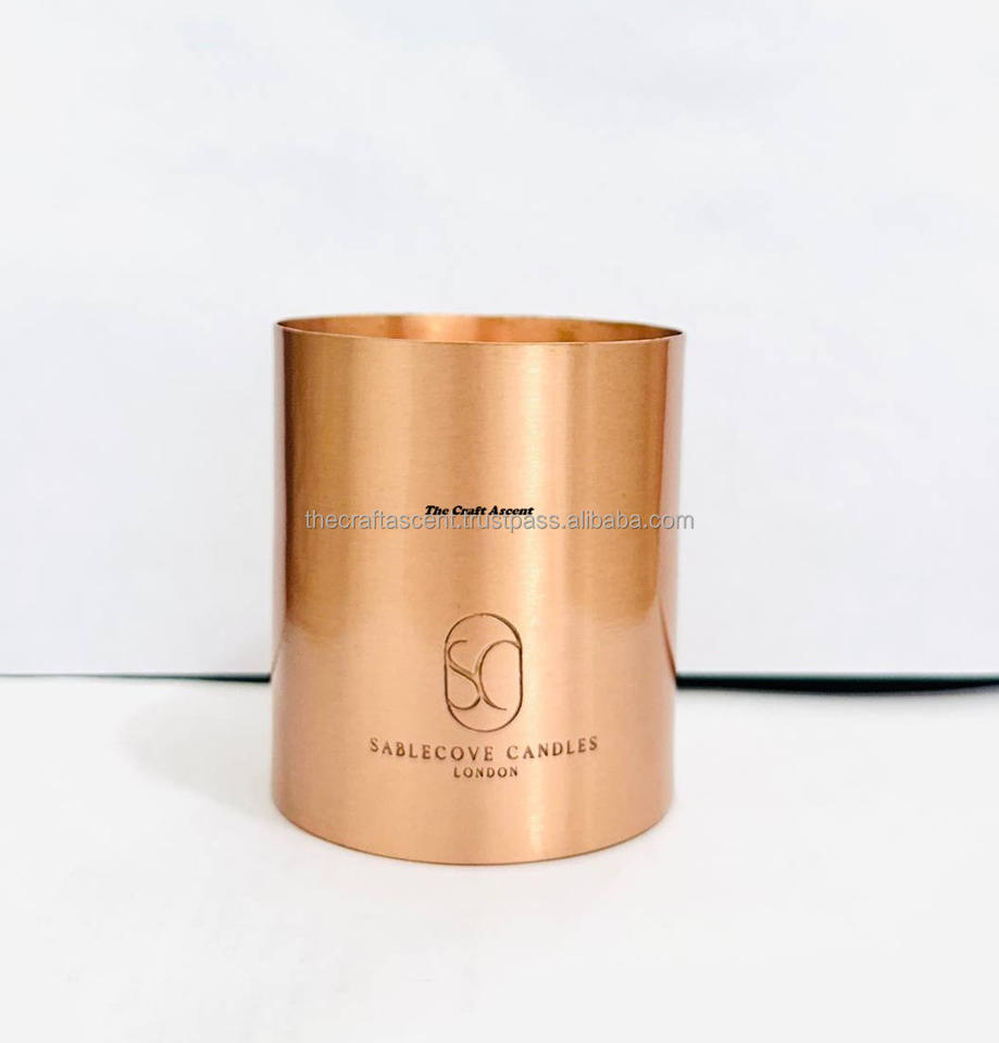 Brass Available Handmade Eco-Friendly Custom Logo Brushed Finished Metal Soy Wax Scented Decorative Candle Containers