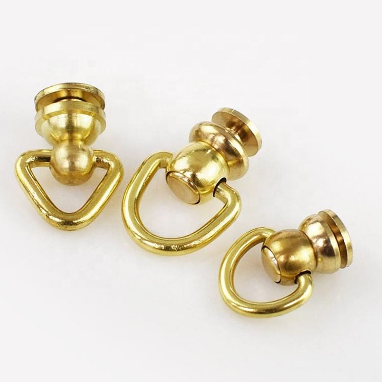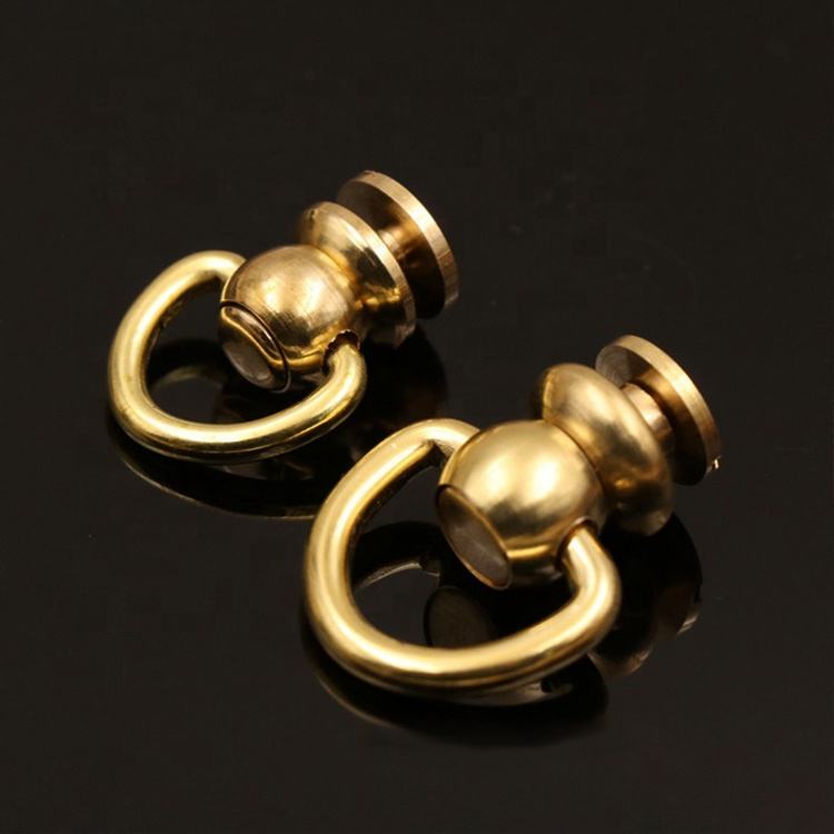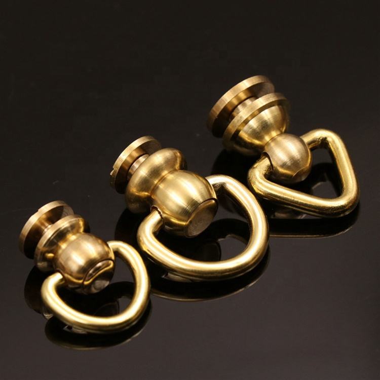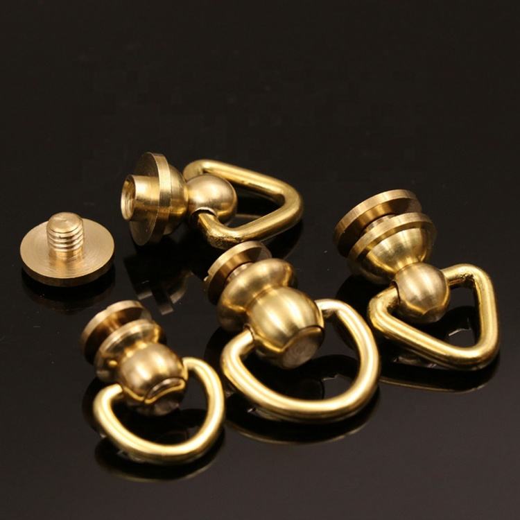 Goujons de poteau à boule en laiton Rivet avec anneau en D vis à tête ronde points d'ongle pivotants 360 têtes rotatives pointes d'artisanat en cuir bricolage