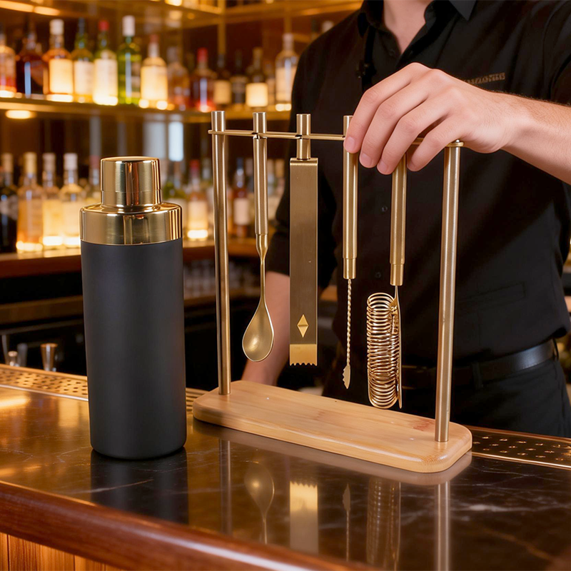 Ensemble d'outils de bar en laiton pour la préparation de cocktails à domicile, construction durable, design écologique, utilisation quotidienne pratique à bas prix