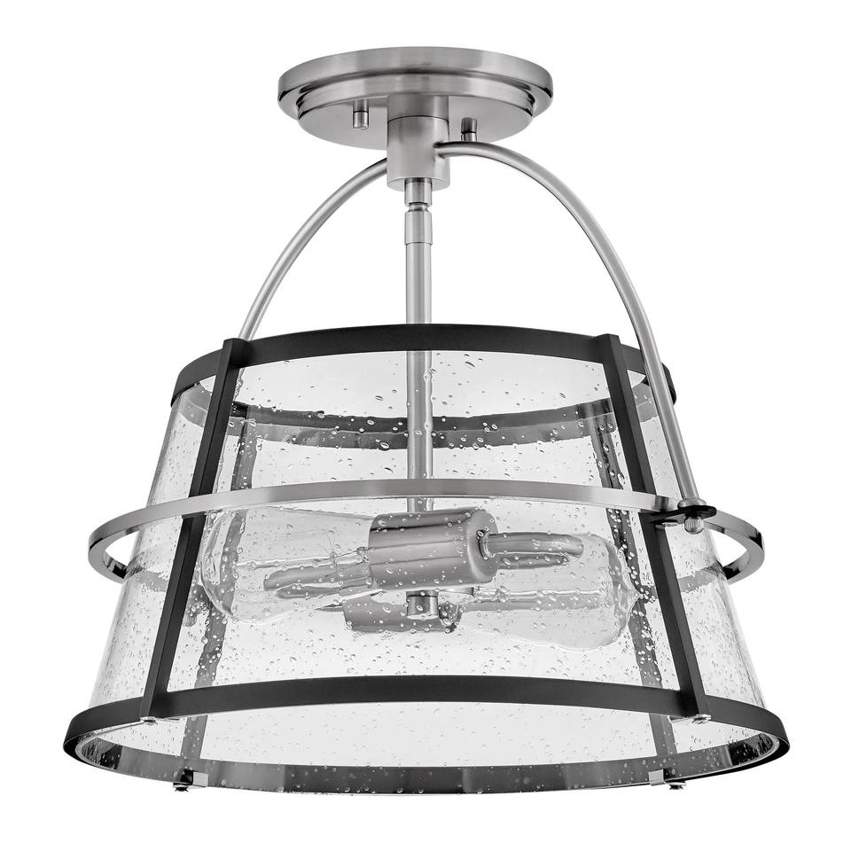 Plafonnier industriel moderne à montage encastré avec base en laiton et verre à bulles | Éclairage élégant pour l'espace de détente de l'hôtel et la chambre d'hôtes