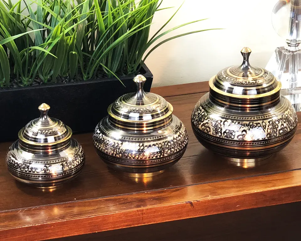 Ensemble de bonbons en laiton/bocal polyvalent doré 3 pièces, décoration de la maison en laiton, pièce maîtresse en laiton au meilleur prix