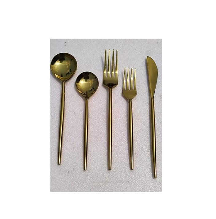 Couverts en laiton ensemble de cuillères de service de fruits cuillère de service à salade en acier miroir avec cuillère en laiton doré à vendre