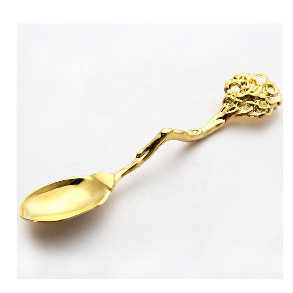 Cuillère à dessert en laiton avec manche en forme de branche d'arbre unique, cuillère à dessert au design royal, ensembles de table à manger pour la maison