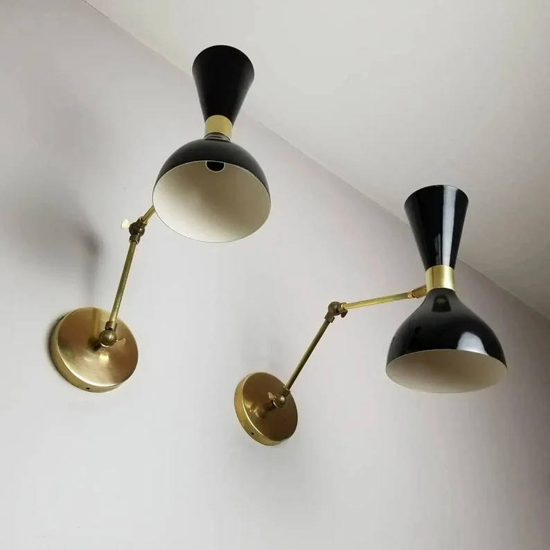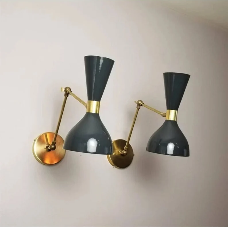 Brass Diabolo Wall Sconce Pair in Mid-Century Modern Style with Green Wall Lights for Retro Home Decor