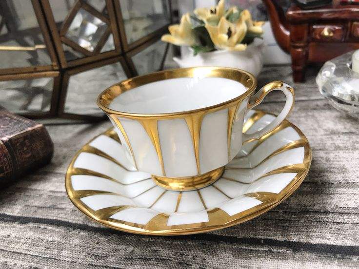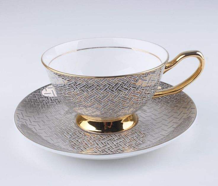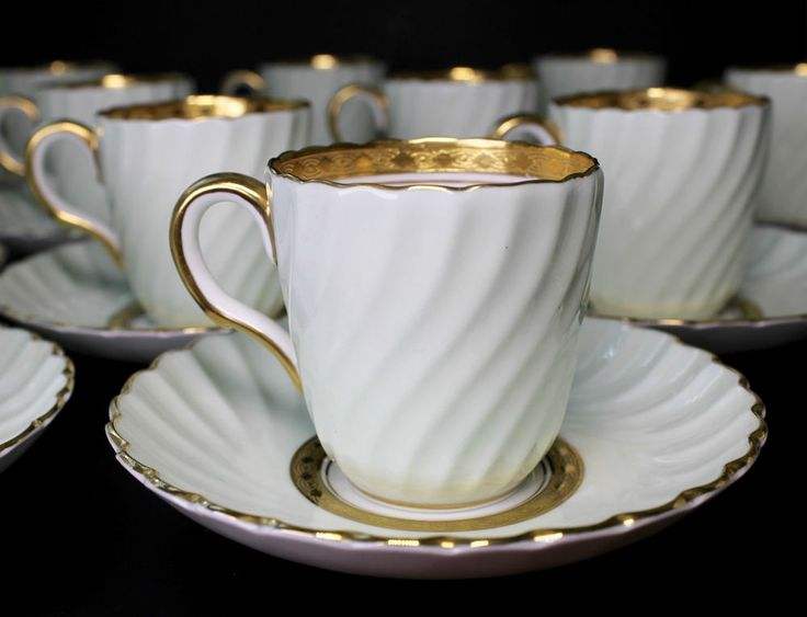 Assiettes à dîner en laiton, ensemble de bols, ensemble de tasses à café de mariage en poterie d'usine avec bord doré blanc brillant