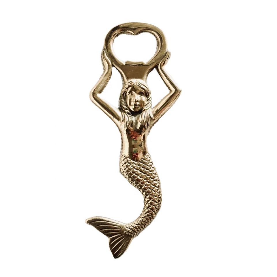 Ouvre-bouteille en laiton avec motif en relief, design sirène, poignée artisanale avec poignée dorée, ensemble d'ouvre-bouteille de bar unique