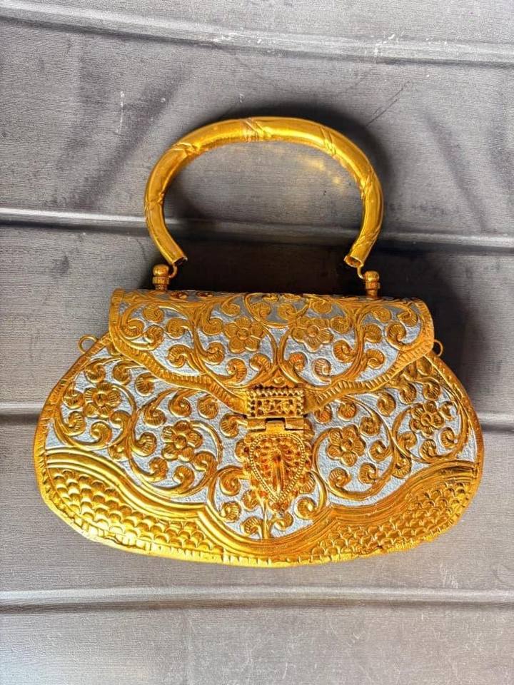 Magnifiques pochettes et sacs à main en laiton gaufré