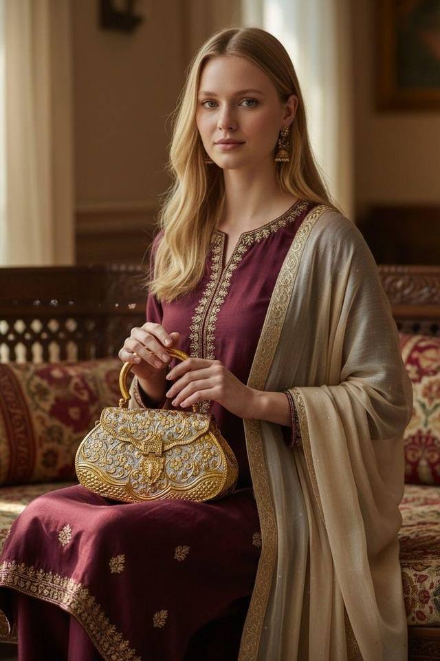 Pochette latérale en laiton gravé motif ancien avec chaîne – Prix raisonnable, touche premium – Accessoires de mariage pour femme en laiton par UO