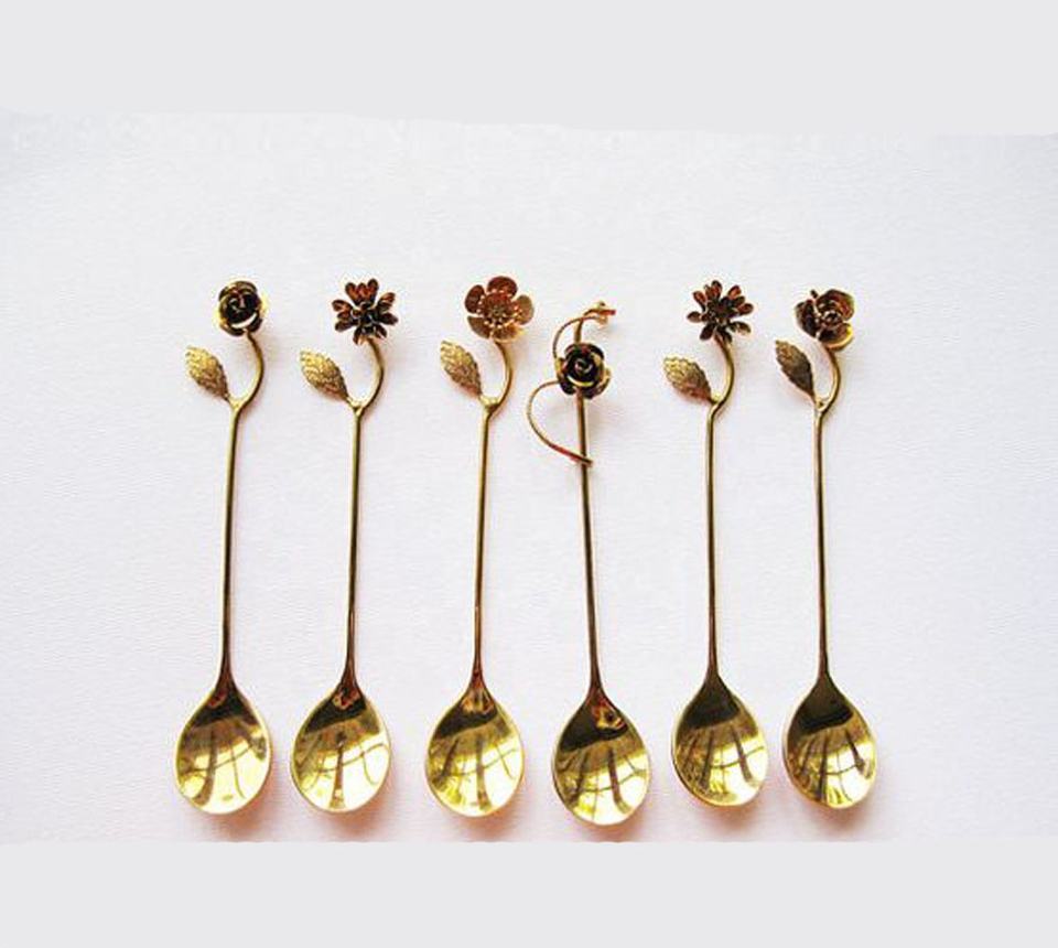 Cuillère à dessert en laiton plaqué or gaufré à long manche multi-design Ensemble de couverts au design unique pour la maison