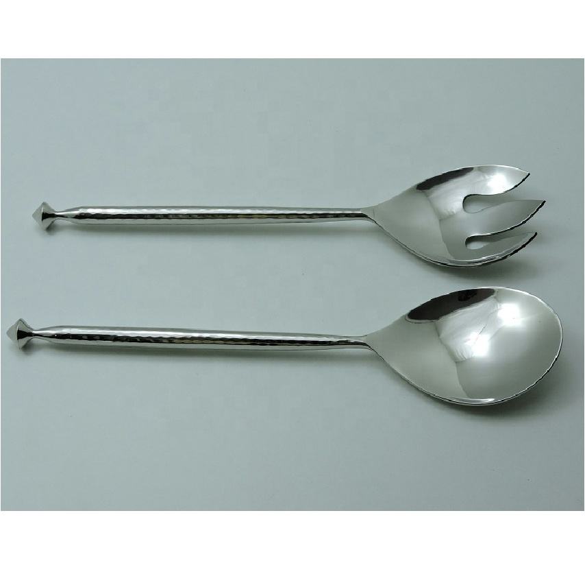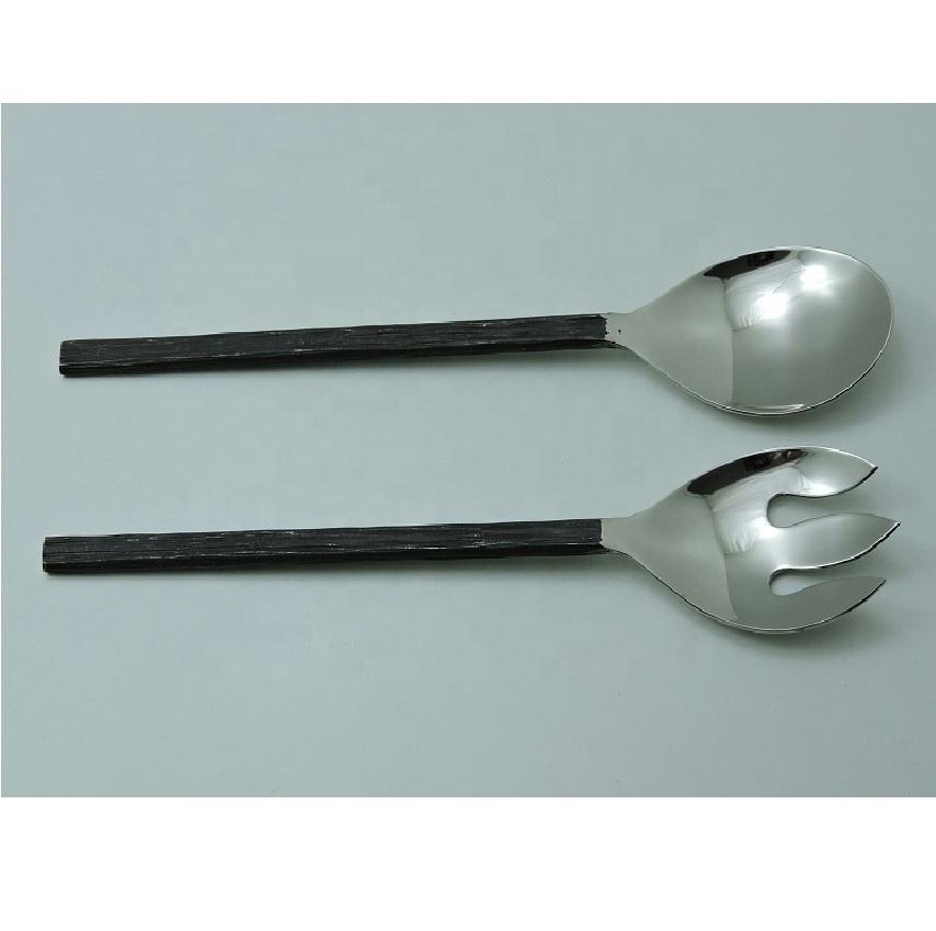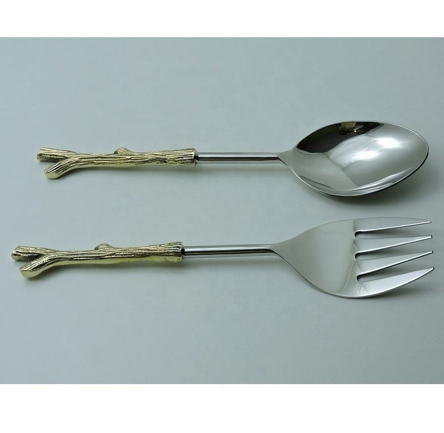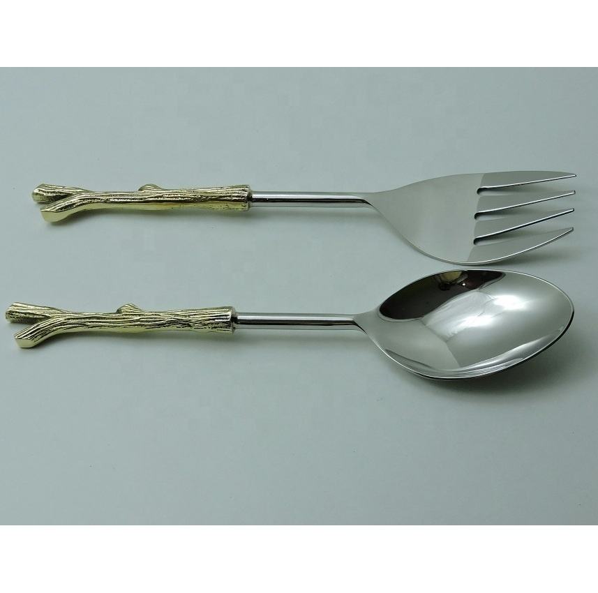 Ensemble de cuillères à salade en acier inoxydable avec manche en laiton – Outils de service à salade en métal très demandés