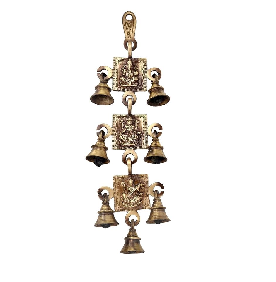Cloche suspendue en laiton avec chaîne pour la maison, le temple et la cérémonie de pendaison de crémaillère - Cadeau moderne, durable et écologique