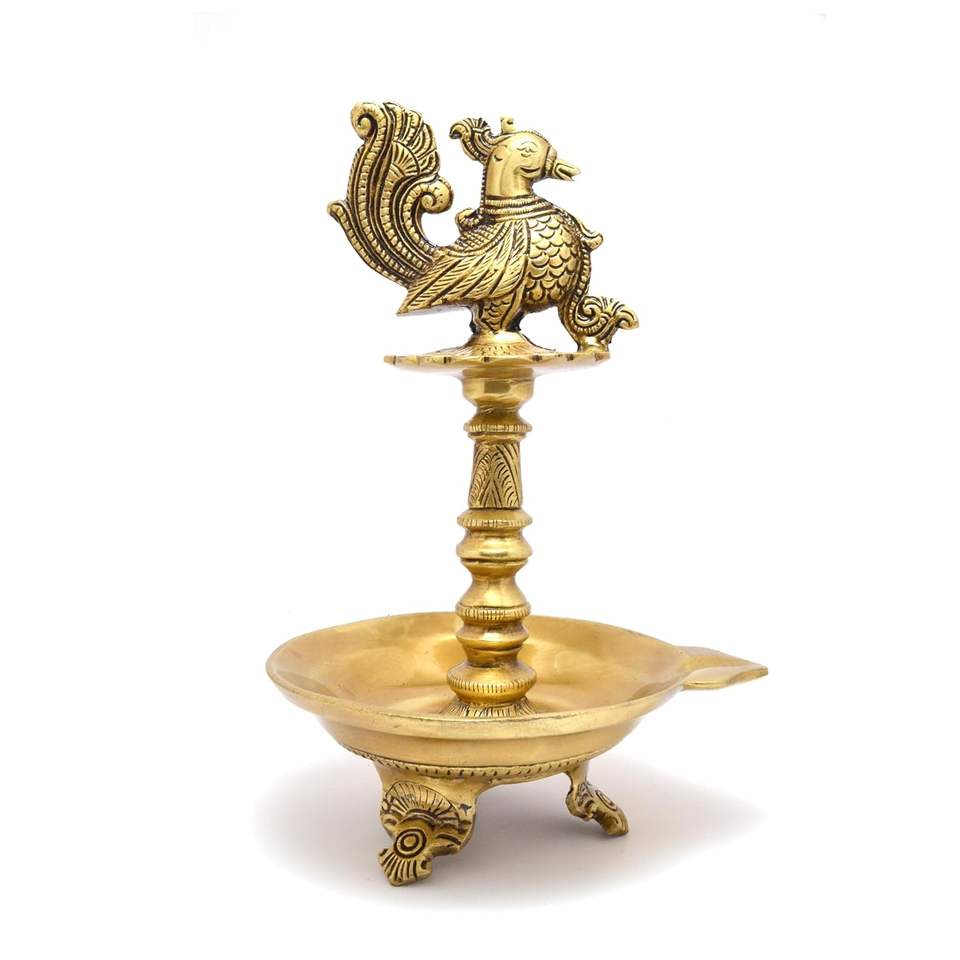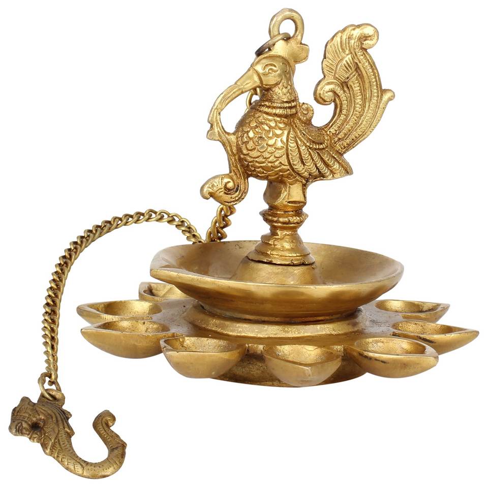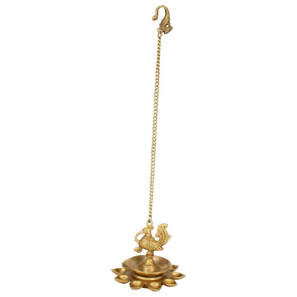 Brass Hanging Peacock Diya Lamp Idol with 7 Height Antique Style for Home Decor Puja and Gifting