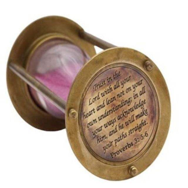 Nom du produit:Sablier en laiton gravé avec verset biblique Proverbes 3:5-6