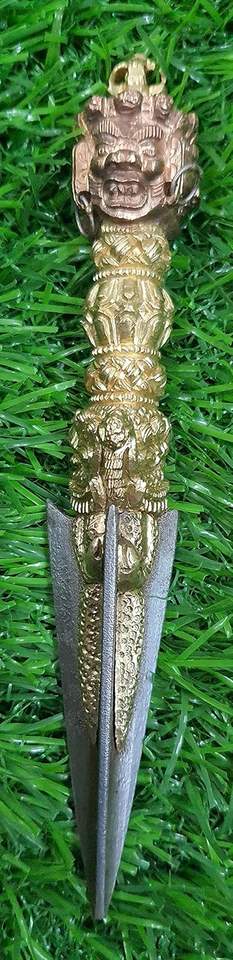 Brass Iron Two Metal Tibetan Buddhist Style Phurba/Vajra Also Used as Table Decoration (Green, 6 inches)