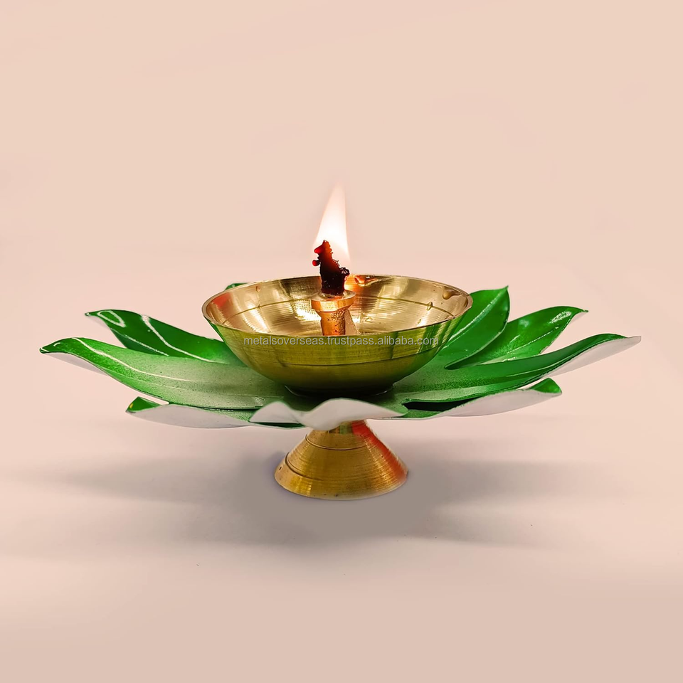 Product name:Brass lotus diya with green petals