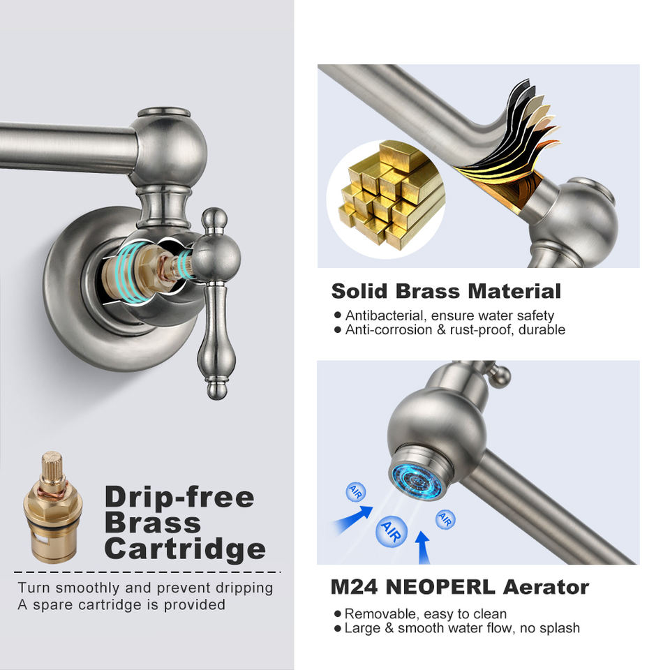 Robinet de cuisine en laiton 2 poignées rotatif extensible Double Joint bras oscillant robinet pliant Pot robinet de remplissage