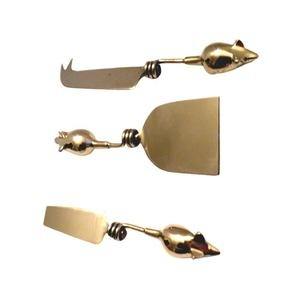Ensemble de 3 couverts à fromage en métal avec poignée en forme de feuille en laiton en acier inoxydable pour restaurants, hôtels et centres de villégiature