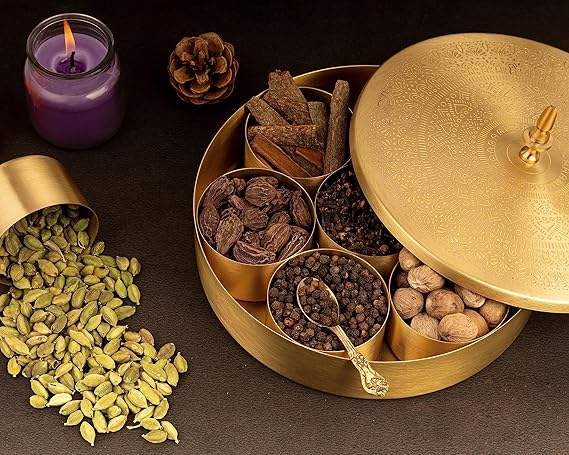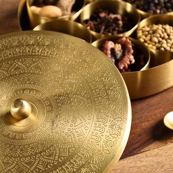 Boîte Masala en laiton pour récipients de stockage d'épices de cuisine Conteneur Masala/Boîte à épices avec relief