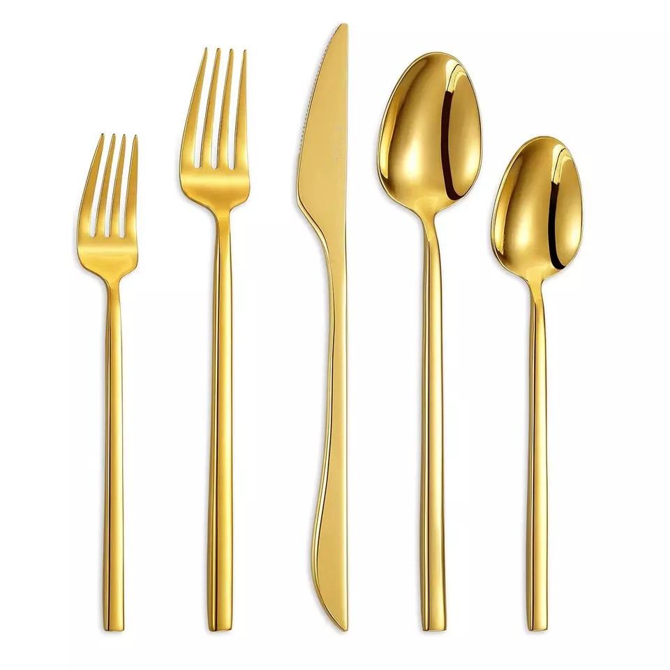 Ensemble de couverts de mariage en laiton, cuillère, fourchette, finition dorée brillante, gravure à la main, écologique, logo personnalisé moderne