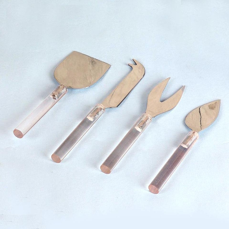 Fil à tricoter gaufré plaqué nickel en laiton, poignée de Table à fromage, ensemble décoratif de fromage, ensemble de trancheur de fromage en acier inoxydable