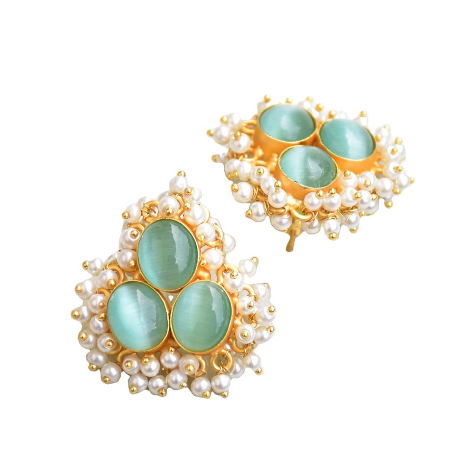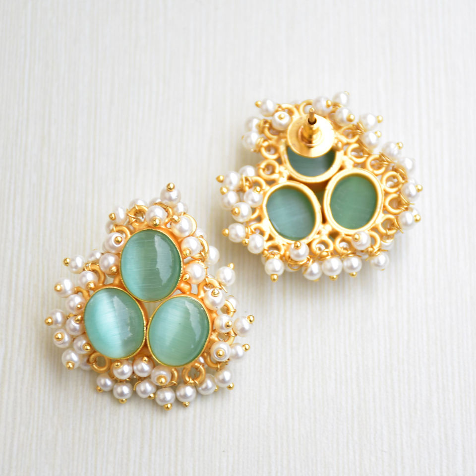 Brass Pearl Stud Earrings Wholesale Stud Handcrafted Semi Precious Satin Brass Finish Nickel Free Durable Ready to Ship Bulk