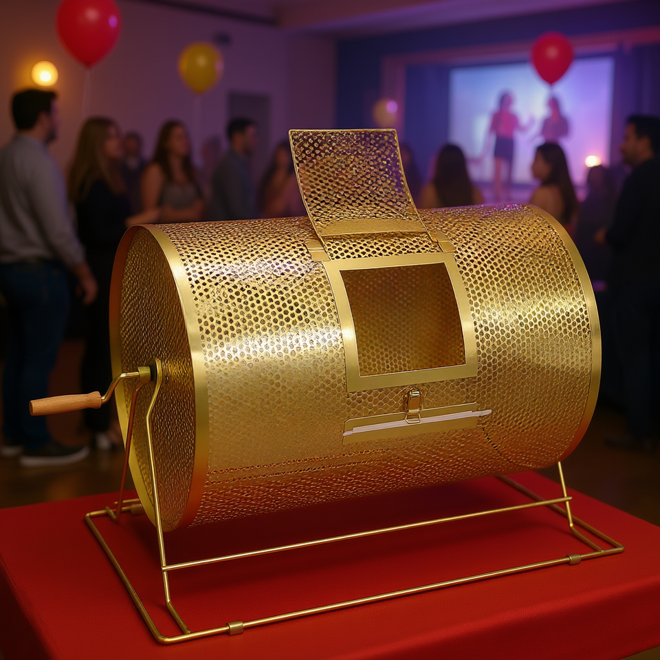 Tambour de tombola en laiton plaqué, 14,8 x 21,26, à manivelle, pour tirage au sort, fournitures de fête