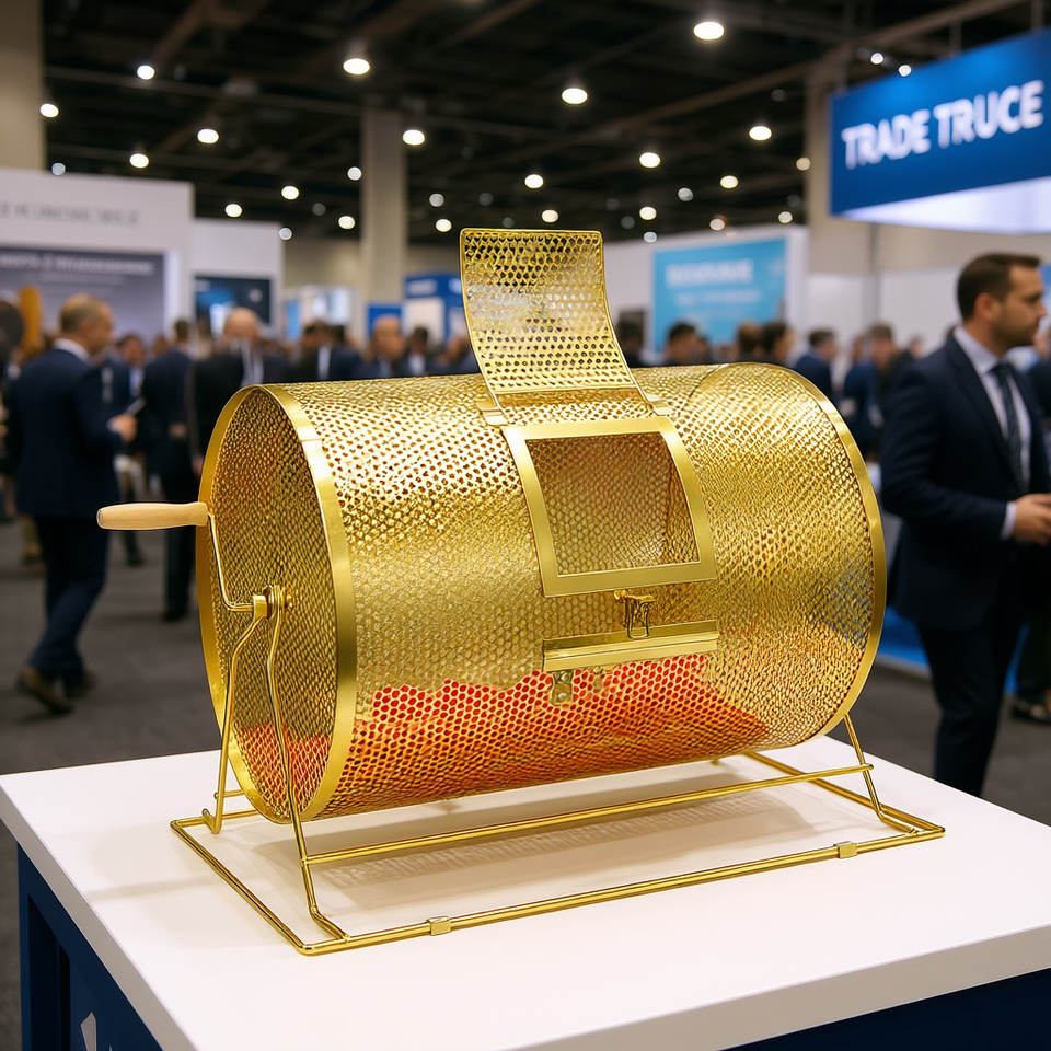 Tambour de tombola en laiton plaqué, 14,8 x 21,26 pouces, cage de tirage cylindrique en métal avec poignée en bois, équipement pour salons professionnels