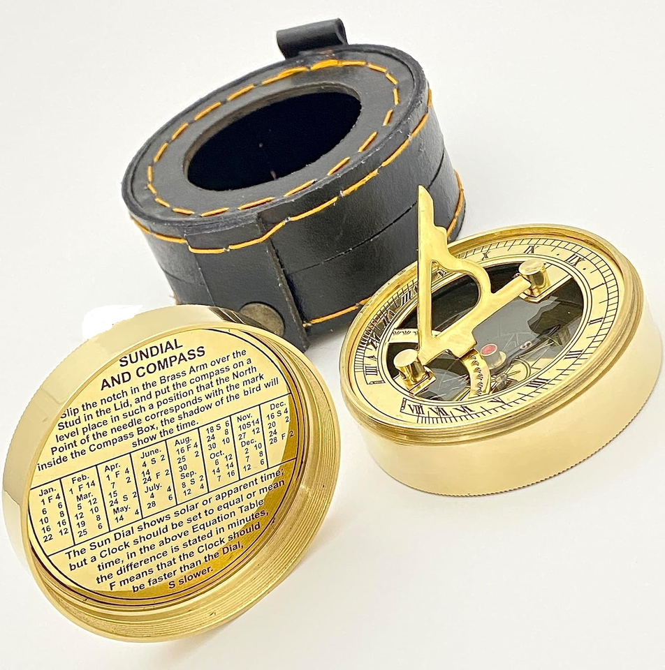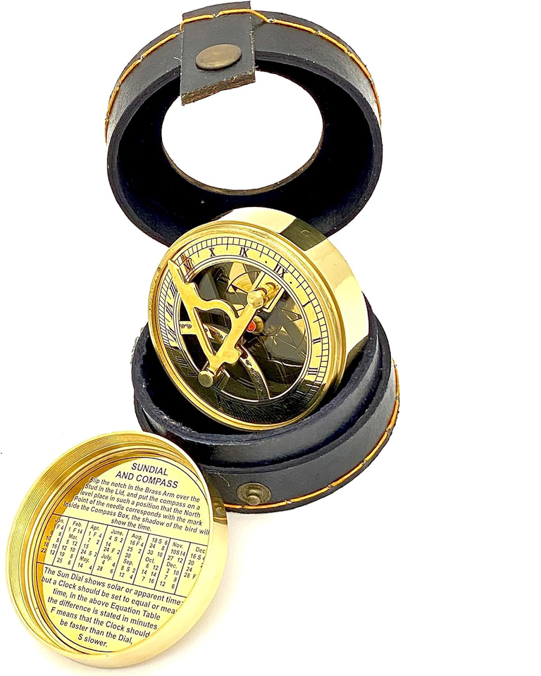Boussole de cadran solaire de poche en laiton nautique avec boîte en cuir poche cadran solaire décor à la maison boussole pour Camping randonnée décor boussole