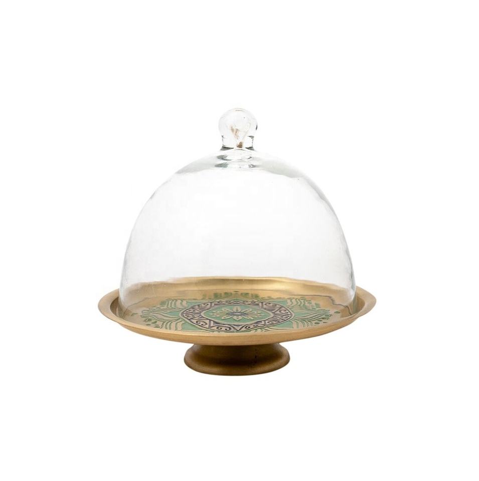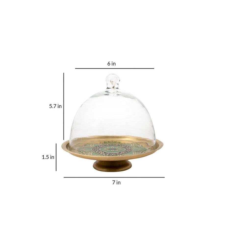 Support à gâteau rond en métal imprimé en laiton avec fabricant de verre grossiste outils à gâteau support à gâteau en alliage d'aluminium maison et décoration