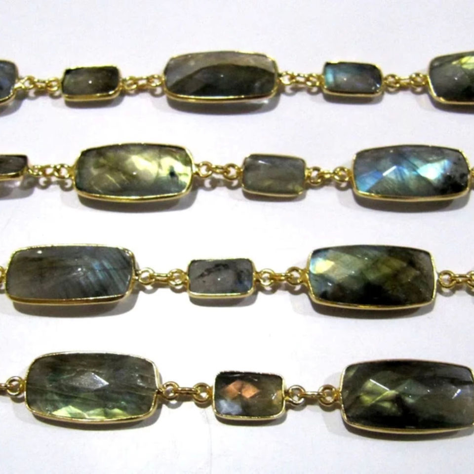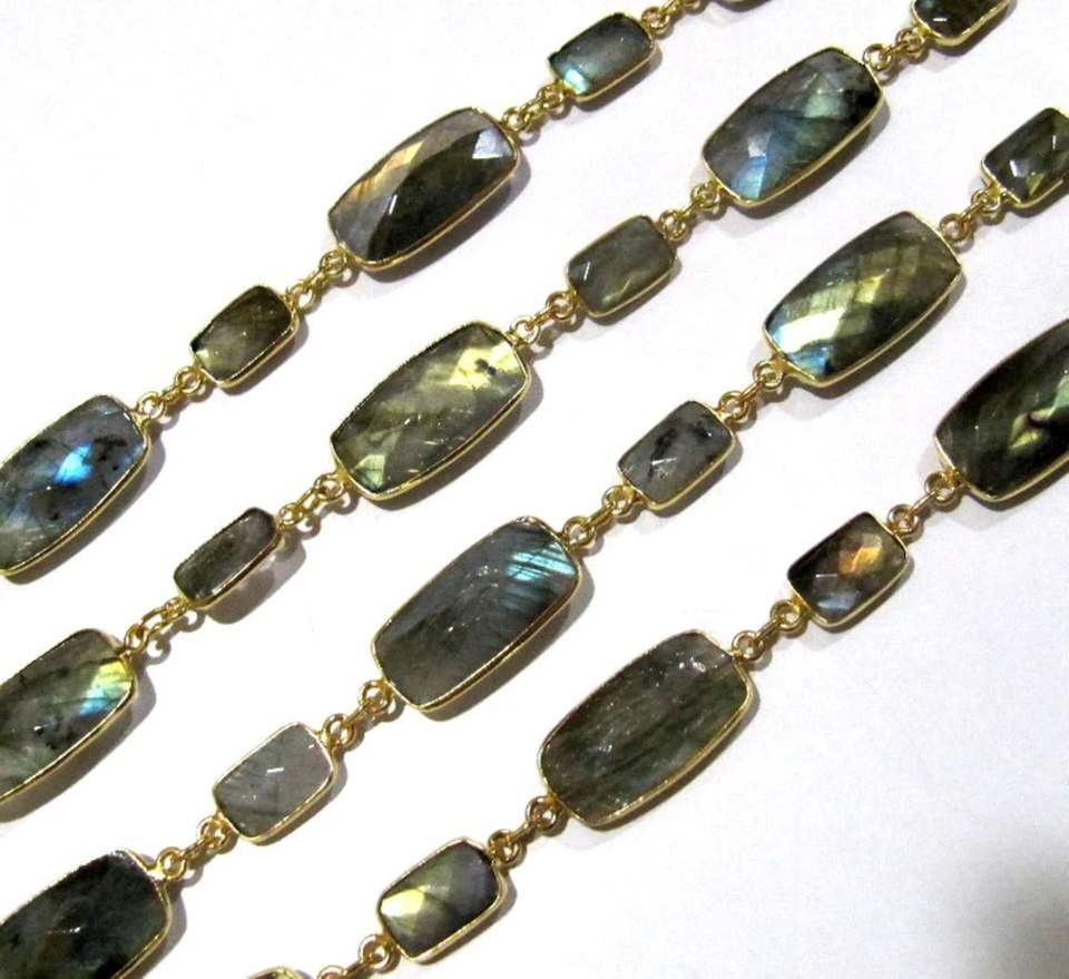 Laiton Rectangle Forme Briolette Facettes Alternet Lunette Connecteur Chaîne Haute Qualité Fabrication de Bijoux Vendu Par Pied