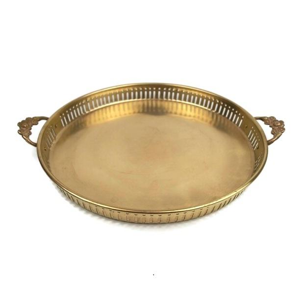 Plateau de service rectangulaire en laiton doré avec poignées en bois Plateau décoratif élégant pour manger