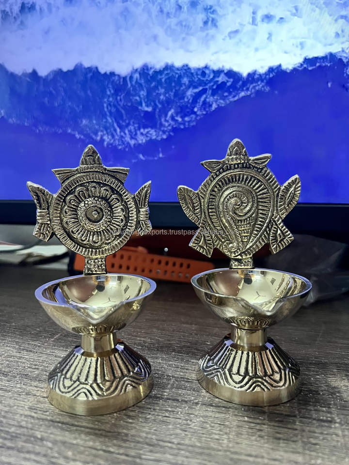 Brass Shanku Chakra Diya for Puja