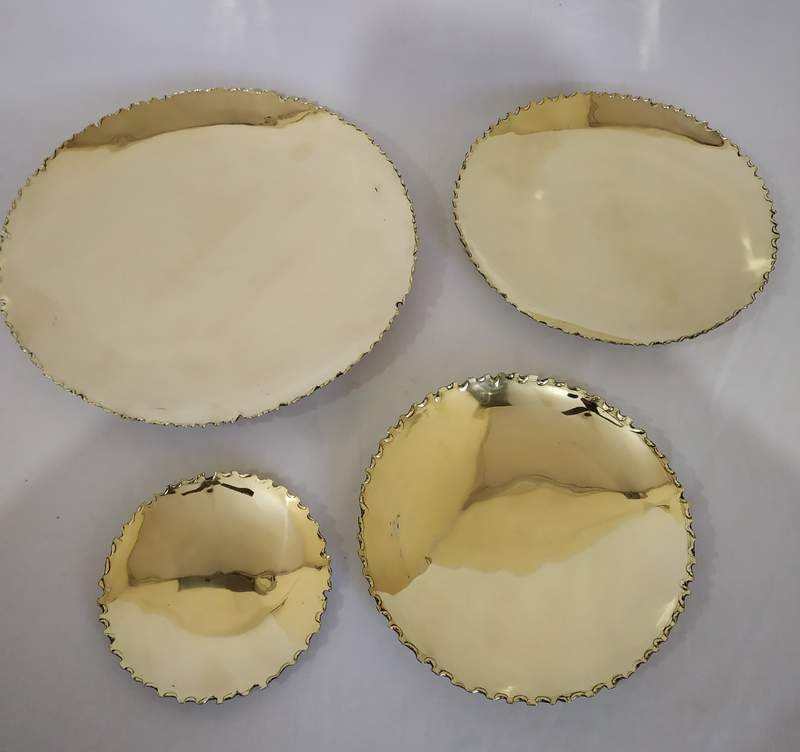 Ensemble de 4 plateaux ronds en laiton brillant polonais miroir fabriqués à la main décoratifs fantaisie Look Designer plateaux de service pour la cuisine