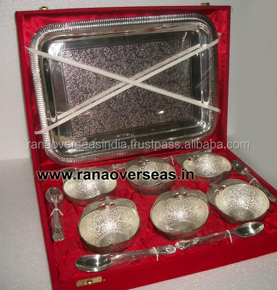 Product name:Silver Plated Apple Serving Bowl Set With 6 Spoons & 1 Tray