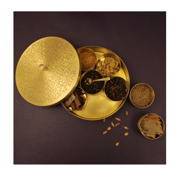Boîte à épices en laiton faite à la main nouvellement artisanat traditionnel indien boîte à épices en laiton métal artisanat accessoires de cuisine