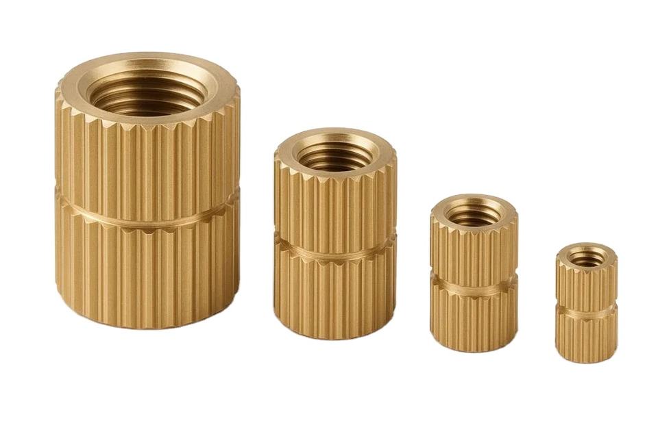 Inserts filetés droites moletées en laiton, fixations métalliques pour plastique et bois, écrous industriels à filetage interne, quincaillerie