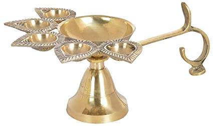 Table en laiton Diya pour Puja avec poignée incurvée pour tenir Arti Diya avec poignée Pooja Articles pour la maison