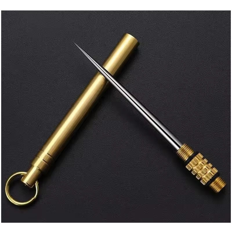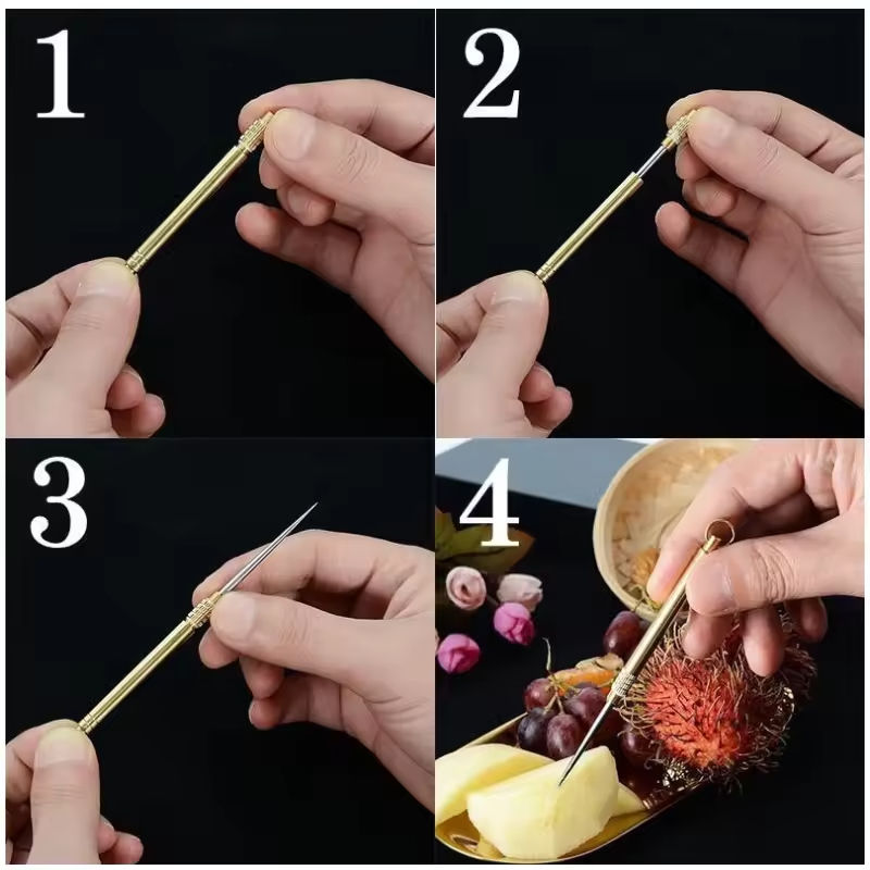 Cure-dent intégré en laiton-titane - Cure-fruits portable multifonctionnel avec pointe en acier inoxydable pour les aventures en plein air