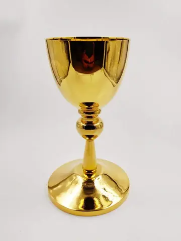 Calice en laiton avec finition dorée avec patène pour usage religieux, calice plaqué argent gravé et gravé avec ciboire