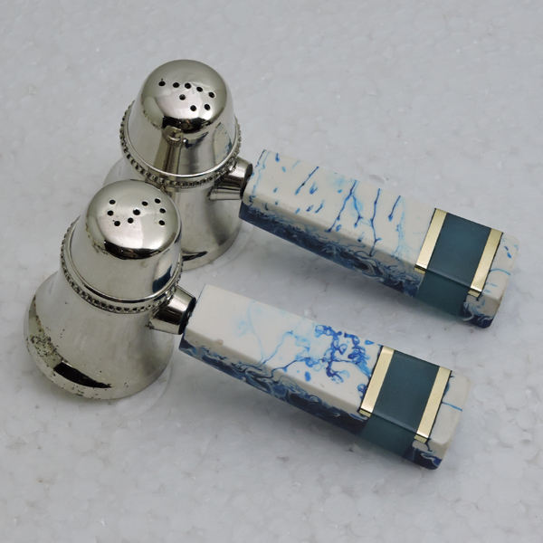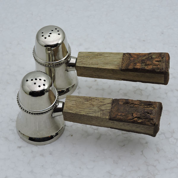 Laiton avec placage d'argent et poignée en bois et résine styliste taille personnalisée sel et poivre pour accessoires de cuisine de table