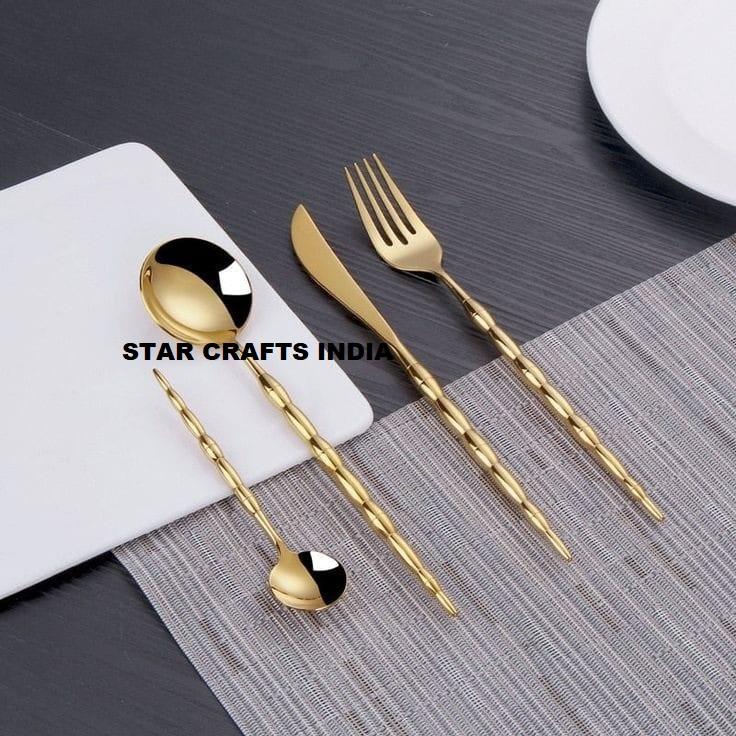 Brass and Stainless Steel Big Serving Spoon and Fork for Buffet Banquet Scoop Use for Hotels Restaurants Cutlery Set