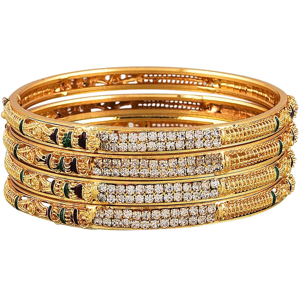 Bracelets en laiton, lot de quatre, pierres serties de diamants, détail émeraude, mode, fête, mariage, chura, disponibles à prix de gros.
