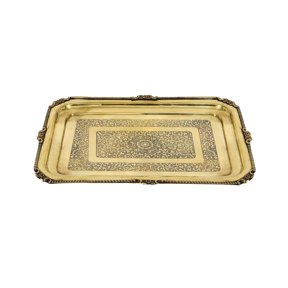 Calvin Handicraft, plateau rectangulaire en laiton 34 x 25 x 25 modèle CHBT00462 pour café et thé, déco cuisine