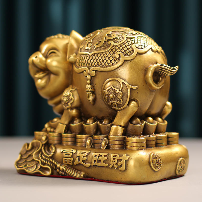Traditional Brass Zodiac Pig Piggy Bank Ornament Rich Prosperous Money Home Decor Carved Metal Craftsmanship