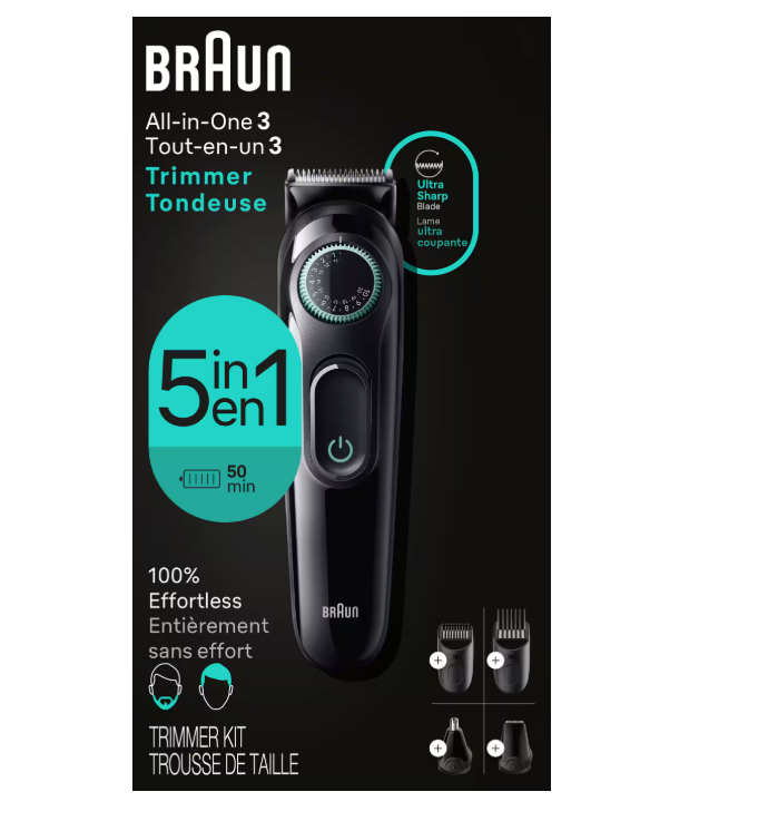 Kit de coiffure tout-en-un Braun Série 3 3450, tondeuse 5 en 1 pour hommes, ensemble de toilettage rechargeable, prix de gros avantageux à vendre