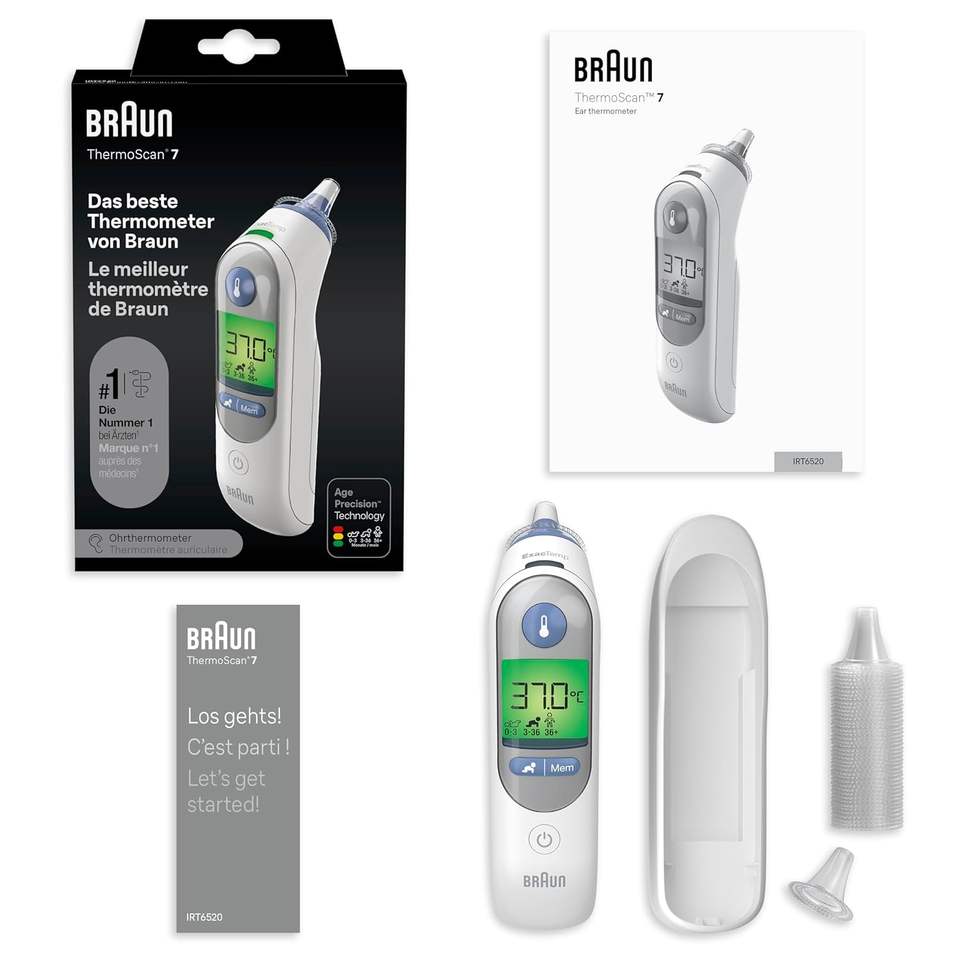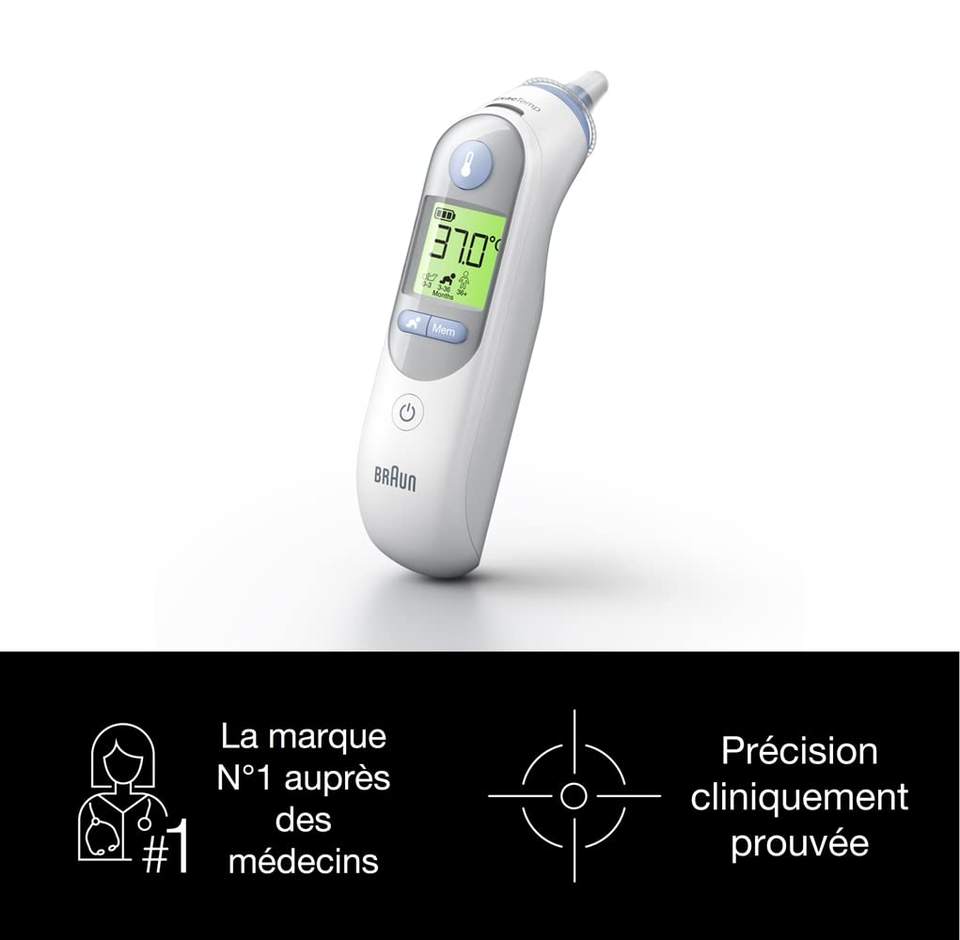 Thermomètre auriculaire Braun Thermo Scan 7 Age Accuracy, silencieux, affichage de la température codé par couleur, fièvre, hygiénique, rapide, précision clinique