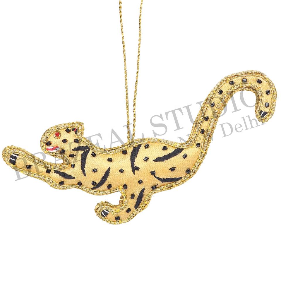 Ornements de Noël personnalisés en velours satiné écologique faits à la main par Brazeal Studio, brodés de perles, fils dorés, oiseau