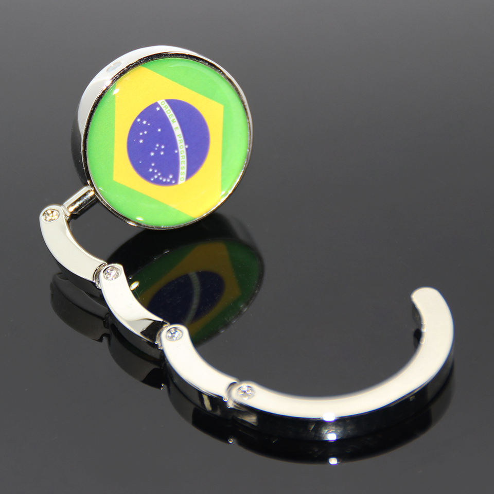 Porte-sac à main drapeau brésilien, cintre Portable, Table, bureau, Clip suspendu, porte-sac, pliable, métallique, personnalisé, crochets pour porte-monnaie